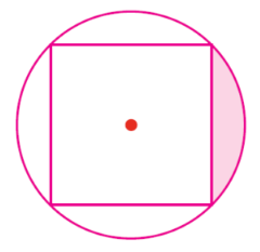 في الشكل؛ إذا كانت الدائرة متماسة مع أضلاع المربع، فقارن بين: