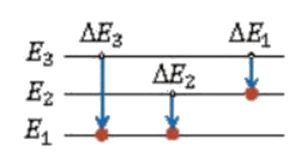 في الشكل المجاور: عند مقارنة التغير في طاقة الفوتونات في ذرة الهيدروجين فإن .. ![]()