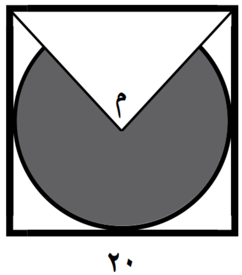 أوجد مساحة المظلل في الشكل التالي إذا كانت م منتصف الدائرة :