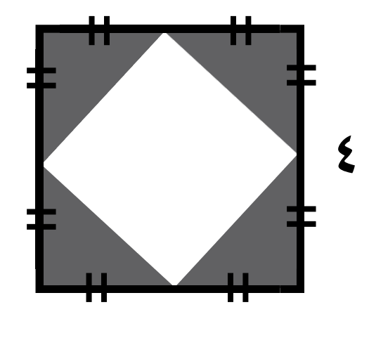 في الشكل المجاور ، إذا كانت أطراف المربع الصغير تماس أضلاع المربع الكبير ، أوجد مساحة المنطقة المظللة :