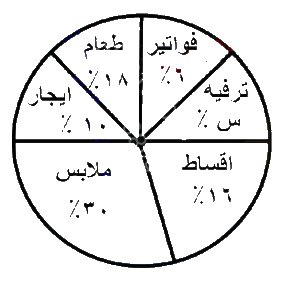 الشكل التالي يمثل مصروفات سلطان شهرياً. إذا كان إجمالي مصروفاته ٥٠٠٠ ريال شهرياً، ونسبة ما صرفه في السفر ٦٥ % مما صرف في الترفيه، أوجد المبلغ الذي صرفه سلطان في السفر.