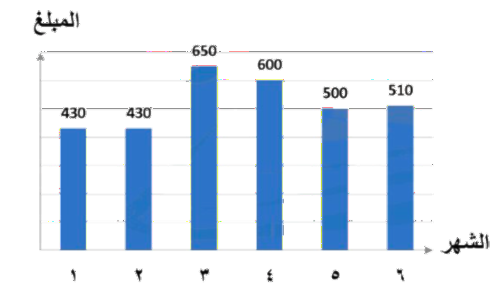 الشكل التالي يوضح المبالغ التي وفرتها هند في ٦ شهور وتريد شراء حاسوب سعره ٣٥٠٠ ريال، كم المبلغ المتبقي لها لشراء الحاسوب؟ ![]()