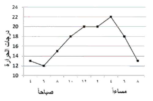 بين أي ساعتين كان التغير في درجة الحرارة أكبر ما يمكن؟ ![]()