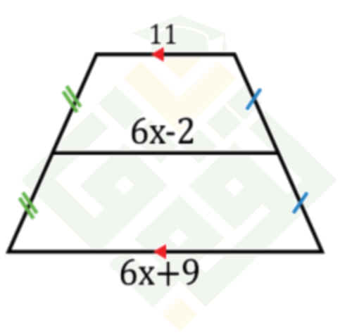 في الشكل، أوجد طول القطعة المتوسطة: ![]()